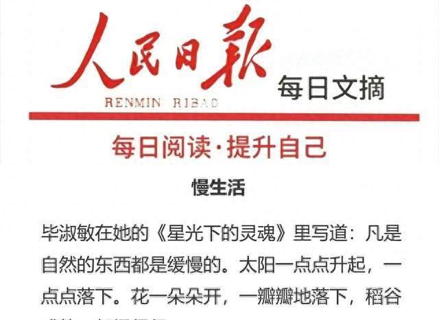 畢淑敏在她的《星光下的靈魂》里寫道:凡是自然的東西都是緩慢的。太陽一點點升起,一點點落下。花一朵朵開,一瓣瓣地落下,稻谷成熟,都慢得很。