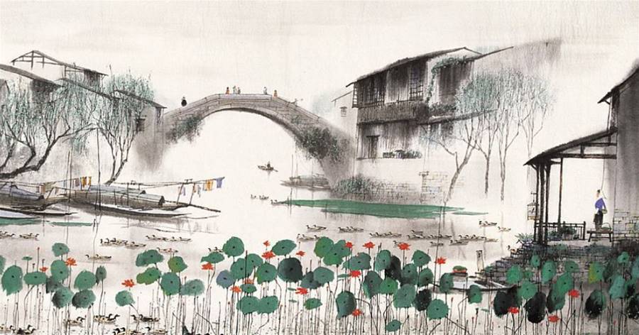 開篇三字「愛吾廬」,詞人直抒胸臆,表達對隱居之所的喜愛。愛屋及烏,詞人隱居在這風景宜人的鏡湖湖畔,他對這里的一切是如此深情。