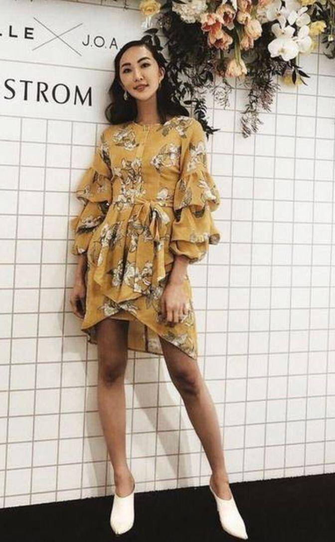 土黃色通常用于碎花裙中,原本碎花元素就很花哨繁瑣了,再加上土黃色的加持,更是增加了造型的俗氣感,難以駕馭不說,還格外的顯齡。